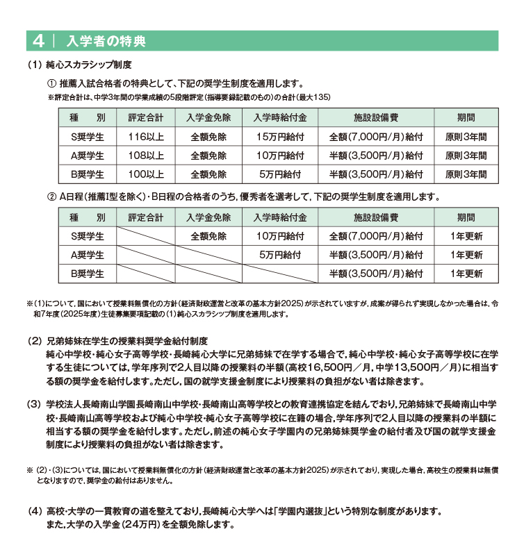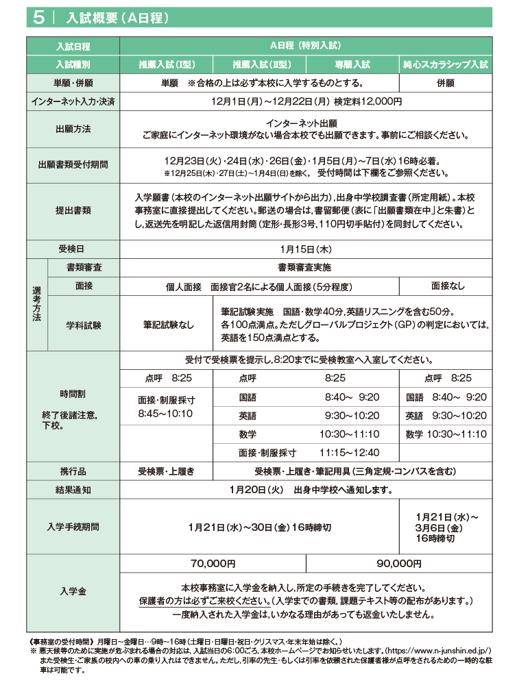 | 推薦入試(Ⅰ型) | 推薦入試(Ⅱ型) | 専願入試 | 純心スカラシップ入試 | |