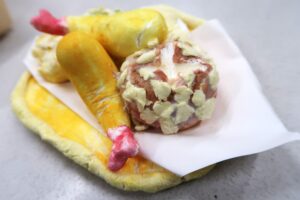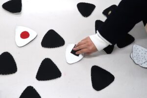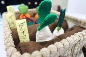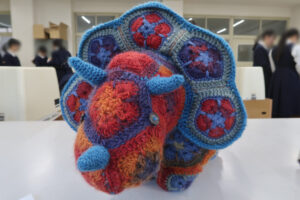 安全に楽しく遊べるおもちゃ、ミシンを使った作品、編み物など、それぞれ工夫を凝らした作品を披露しました。