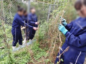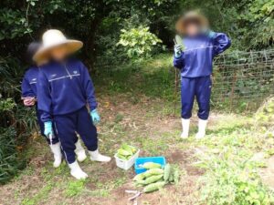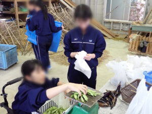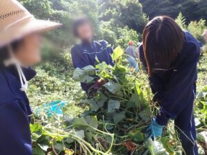 サツマイモの収穫、インゲンの収穫・撤去、収穫物の袋詰め