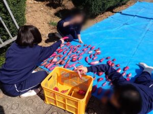少し作業すれば汗ばむような天気であったが、生徒たちは去年もやったことがあるということで、手際よく作業をしてくれた。