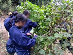 10月なのにさわやかな秋晴れとはいかず、夏のような強い日差しと気温の中で、生徒たちは多種類の作業を手分けして行った。