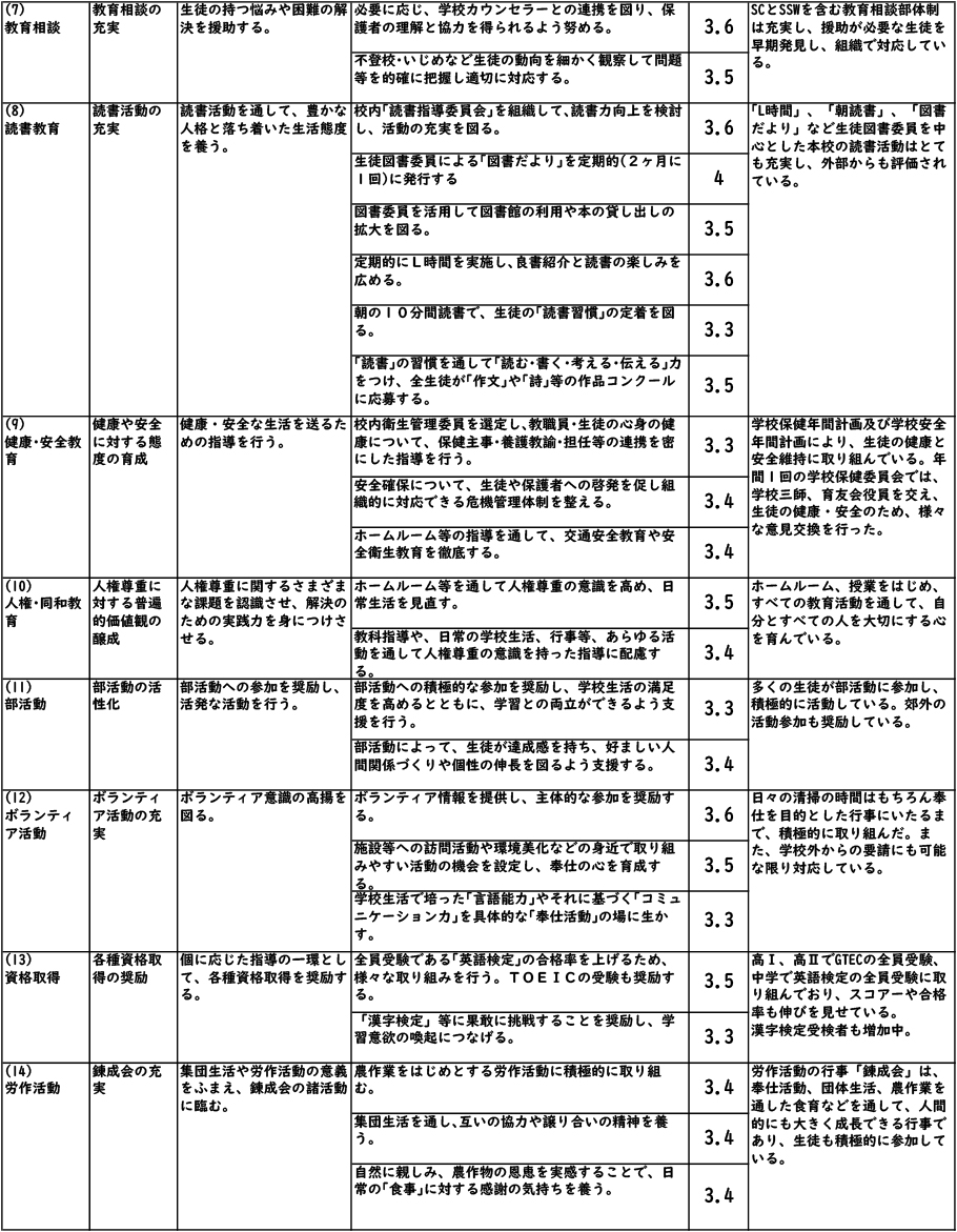 令和7年度 学校評価 高校生徒アンケート結果(PDF)